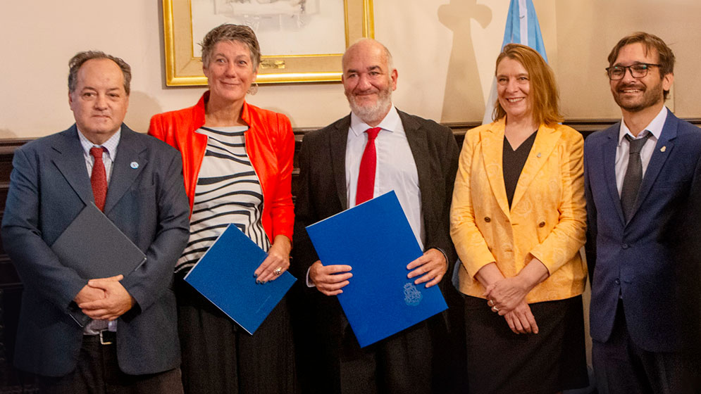 Dr. Rodolfo Pregliasco junto a representantes de la UNC y la FaMAF. Foto: UNC.